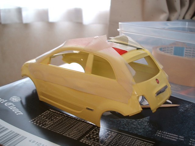 次に塗り分けのためのマスキング。これをやると必ず肩が凝るんで嫌いな作業です・・・。